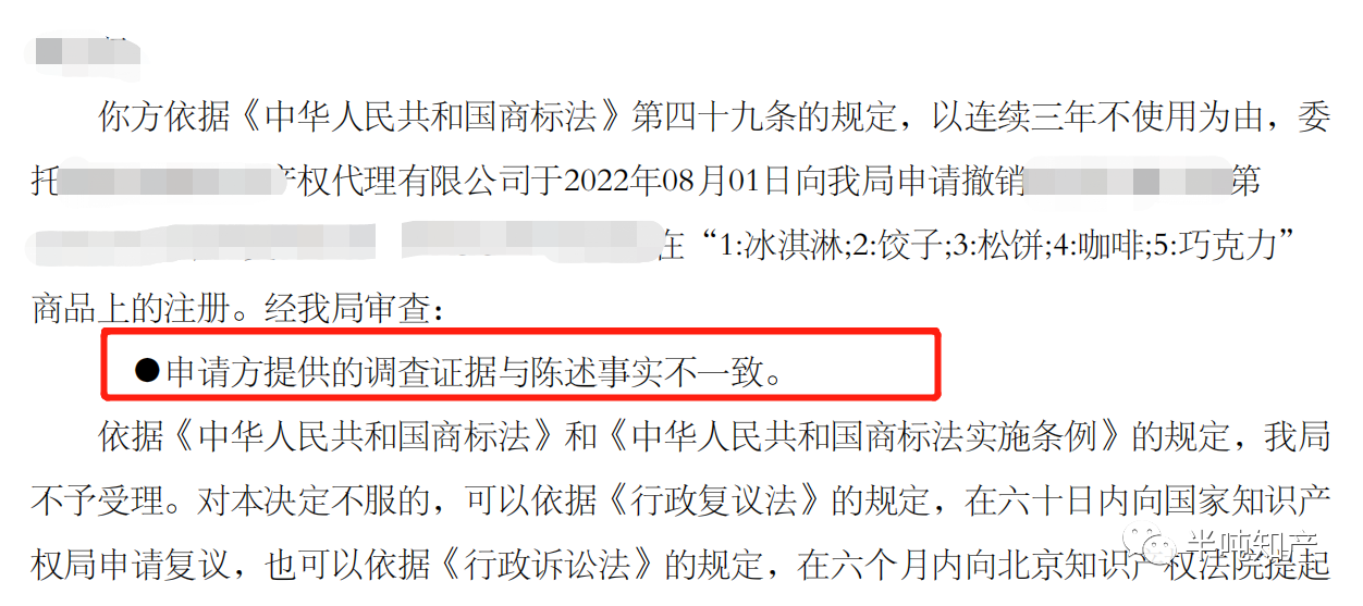 随着商标审查逐步严格,撤三也未能幸免,以前对一个商标提撤三,简单写两句话,网上简单搜一下,基本上没有不受理的,但最近小伙伴遇到了“申请方提供的调查证据与陈述事实不一致”、“申请证据中的搜索页面显示不真实”,导致撤三不受理。 那具体该怎么做才能避免呢,操碎心的国知局也给出了相应的操作指南,相关理由应该这样写: 例一:申请人对主流搜索引擎、购物网站进行检索,未查询到注册人及其被授权人对撤销商标在核定使用的商品或服务项目近三年的使用情况。 例二:申请人通过对大型商超、卖场及其他经销场所进行实地走访,未发现注册人及其被授权人对撤销商标在核定使用的商品或服务项目近三年的使用情况。 例三:申请人通过查询注册人及其被授权人营业执照、生产经营许可等信息,发现其生产经营范围、资质等方面并未涵盖核定使用的商品或服务项目,或者其并未/无法在中国大陆地区开展相关业务,认为该商标已经三年不使用。 证据材料应该这样: 例一:搜索引擎、购物网站检索结果截图。 例二:实地走访过程中拍摄的照片、视频或书面证明材料。 例三:营业执照、生产经营许可等信息的查询结果截图或报告。
