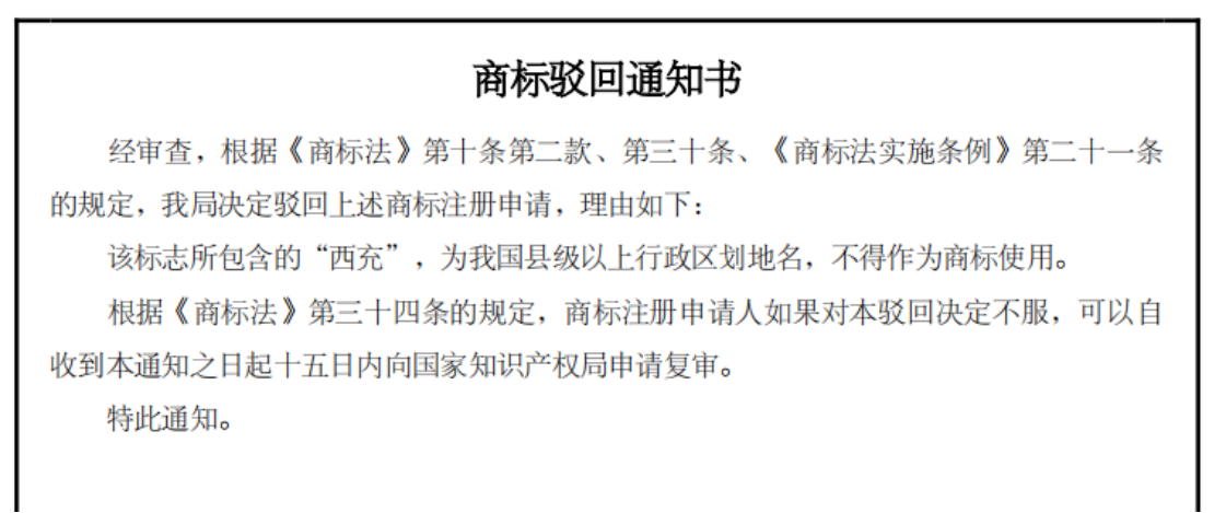 驳回理由:县级以上行政区划的地名或者公众知晓的外国地名,不得作为商标。 此处说明,地名具有其他含义或者作为集体商标、证明商标组成部分的除外;已经注册的使用地名的商标继续有效。 从几个案例可以看出,随着时间的推移,以及大众认知的改变,商标审查的标准也在更新变化。就会遇到申请人的重新申请的商标与已经获证的老商标基本相同,甚至重新申请的商标与老商标完全相同的情况下也遇到了驳回。 如遇到重新申请驳回,一定做好对老商标的维护,及时续展,使你的商标专用权成为一种“长久权”。保留使用证据,应对撤三和无效宣告。