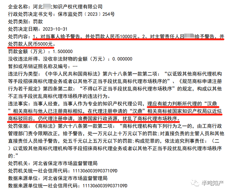 可能是代理机构想出的一个馊主意,不停地反复申请注册,让异议方疲于应对,甚至处罚的前一个月2023年09月23日,该代理机构还在代理新申请,这就引起了相关部门的注意,直接来了个15000元的处罚,这次估计会消停。